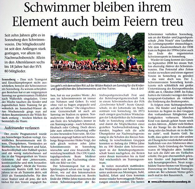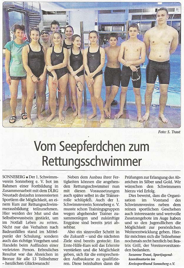 „Ich möchte nicht nur einem Trainer meinen Dank aussprechen, sondern allen Übungsleitern des 1. Schwimmverein Sonneberg“, sagt Beatrix Grill. Diese sind Isabel, Undine, Kati, Martin, Diane, Diana und Michael. Sie stehen jede Woche am Beckenrand des Sonnebades und trainieren die Kinder. Sie helfen ganz aktiv mit, damit das Vereinsleben und das Training funktioniert. Sie haben für alle Fragen ein offenes Ohr, dafür soll Ihnen gedankt werden.